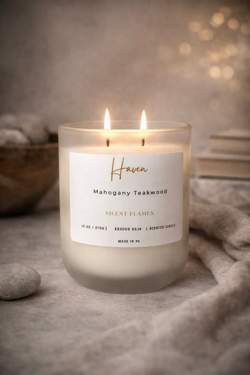 A place to rest. A place to feel safe. Haven is a grounding, calming blend designed to create a sense of peace, strength, and security. Soft lavender and geranium open the fragrance with gentle calm, while rich mahogany, cedarwood, and oak settle in—steady, warm, and reassuring. Light it and let your space become a refuge.